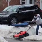 A short video showing a man in Brampton using a regular lawnmower to clear snow from his driveway has gone viral on Canadian social media.The short clip shows the man pushing an electric or gas-powered push mower back and forth over a thin layer of snow and ice on a residential driveway.
