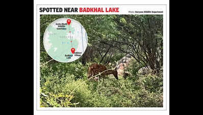 Gurgaon: A spotted deer — or chital — with its distinctive russet-brown coat and white spots, was observed near Badkhal lake in the Faridabad Aravalis by forest department officials on…