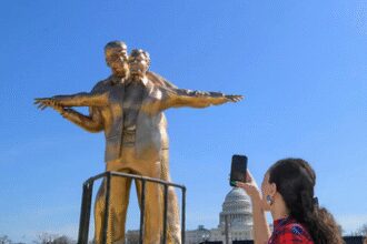 ‘King of the world’ statue of Trump and Epstein in Titanic pose appears near US Capitol