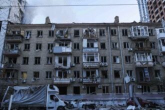 A residential building damaged by Russian strike in Kyiv (Pic credit: AP)…
