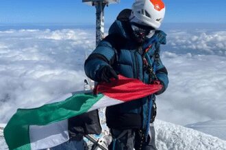 Fatima Al Awadhi raises the UAE flag atop Mount Elbrus after her…