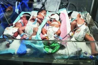 Palestinian newborns share an incubator at Al-Helou hospital in Gaza City (Reuters)…