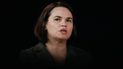 Sviatlana Tsikhanouskaya from Belarus speaks during the Concordia Annual Summit (Image credits: AP)