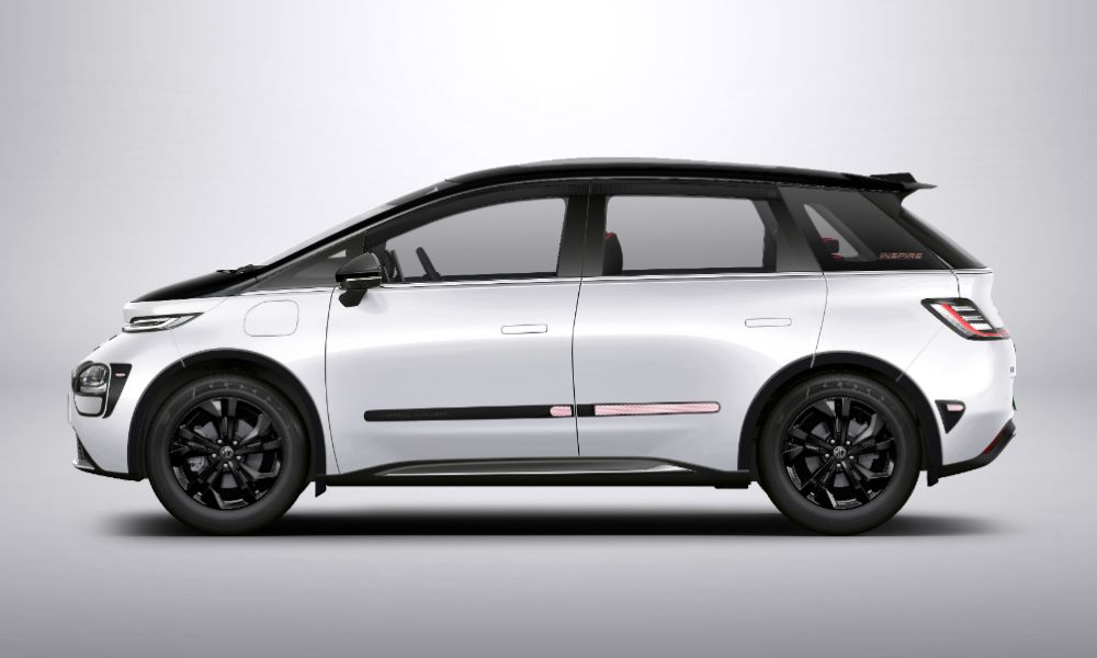 Visually, the Inspire Edition stands apart with its dual-tone Pearl White and Starry Black finish. MG has taken a sophisticated yet sporty approach — using blackened exterior accents, all-black alloy wheels, and rose gold claddings for a touch of luxury.