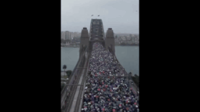 Marchers on the Sydney harbour bridge (@MaryKostakidis)