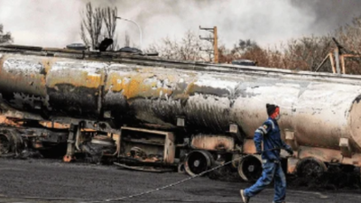A fuel tanker vehicle destroyed in US-Israeli strikes in Tehran